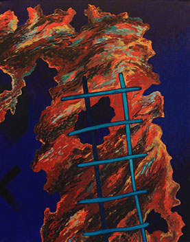 In the 90's, images of the ordinary object, unnoticed, unlooked at, debris found in the street, rendered inherently abstract in the photo-negative, continued to inform my work. I used my repertoire of painting techniques, and tools: the airbrush, air gun, brush, trowels, my fingers, masking and making stencils, squeezing paste through stencils and whatever else came to hand to charge the painting or drawing with spatial texture and drama. I felt I was a 'foolish, extravagant spirit, full of forms, figures, shapes, objects, ideas, apprehensions, motions, revolutions." And I was thankful for it.