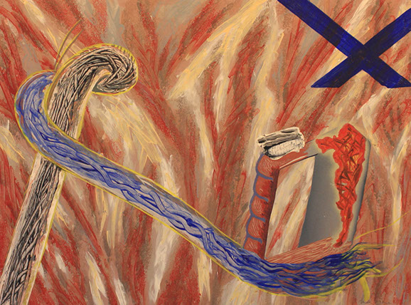 In the 90's, images of the ordinary object, unnoticed, unlooked at, debris found in the street, rendered inherently abstract in the photo-negative, continued to inform my work. I used my repertoire of painting techniques, and tools: the airbrush, air gun, brush, trowels, my fingers, masking and making stencils, squeezing paste through stencils and whatever else came to hand to charge the painting or drawing with spatial texture and drama. I felt I was a 'foolish, extravagant spirit, full of forms, figures, shapes, objects, ideas, apprehensions, motions, revolutions." And I was thankful for it.